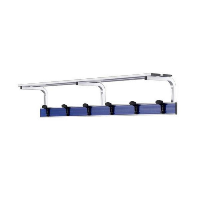 Appendiabiti a parete con ripiano porta borse in alluminio anodizzato ed inserto in PVC, lunghezza 1 o 2 metri, struttura in alluminio verniciato sezione 30x30 mm.
