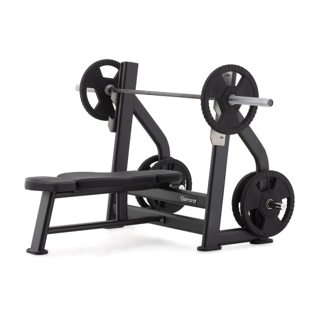 La Panca Olimpica Piana DIAMOND della Serie 550 dispone di 2 supporti bilanciere ad altezze diversificate oltre alla comodità di avere 2 supporti dischi per lo stoccaggio immediato.
