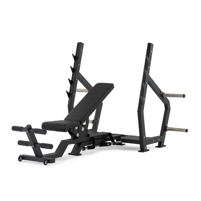 La Panca Olimpica Regolabile è la soluzione ideale per tutte quelle realtà che necessiterebbero di Panche Olimpiche con portabilancieri integrati ma che non hanno la possibilità di spazio per poterle avere tutte.