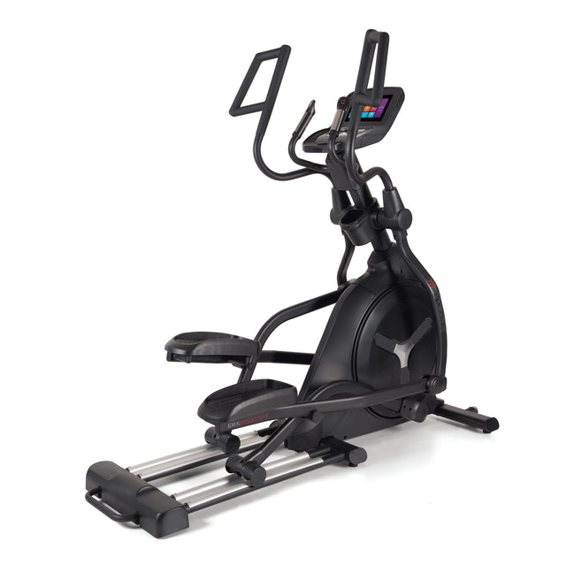 Ellittica ergometro professionale per palestre e strutture ricettive, dotata di sistema di frenaggio a induzione con regolazione elettronica su 32 livelli, pedane extra large per postura stabile e confortevole e componentistica pensata per un uso intensivo. La console TFT touch integra funzioni multimediali e connettività avanzata.